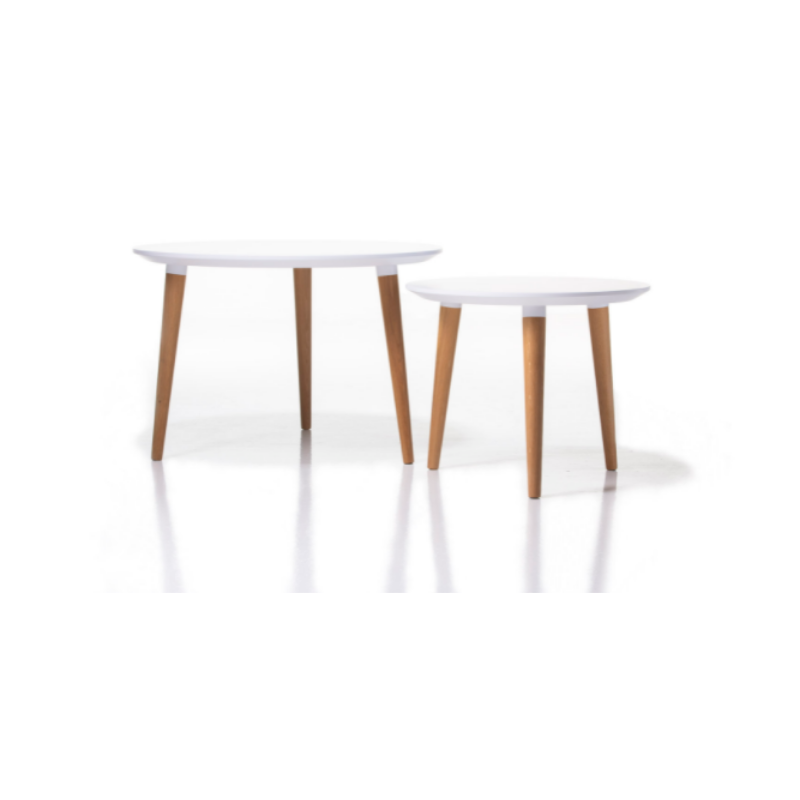 Stolíky s okrúhlymi sústruženými nohami. Elegantné, jednoduché a praktické. Pôsobia ľahko, vzdušne, nezaťažia priestor. Vynikne pri nich každá sedacia súprava, harmonicky doplnia interiér. Sú vhodné napríklad ako kávové stolíky k sedacím súpravám, alebo príručné stolíky pre odkladanie drobností. Možno kombinovať rôzne veľkosti a výšky a vytvárať tak pôsobivé a praktické zoskupenia pre každú príležitosť.